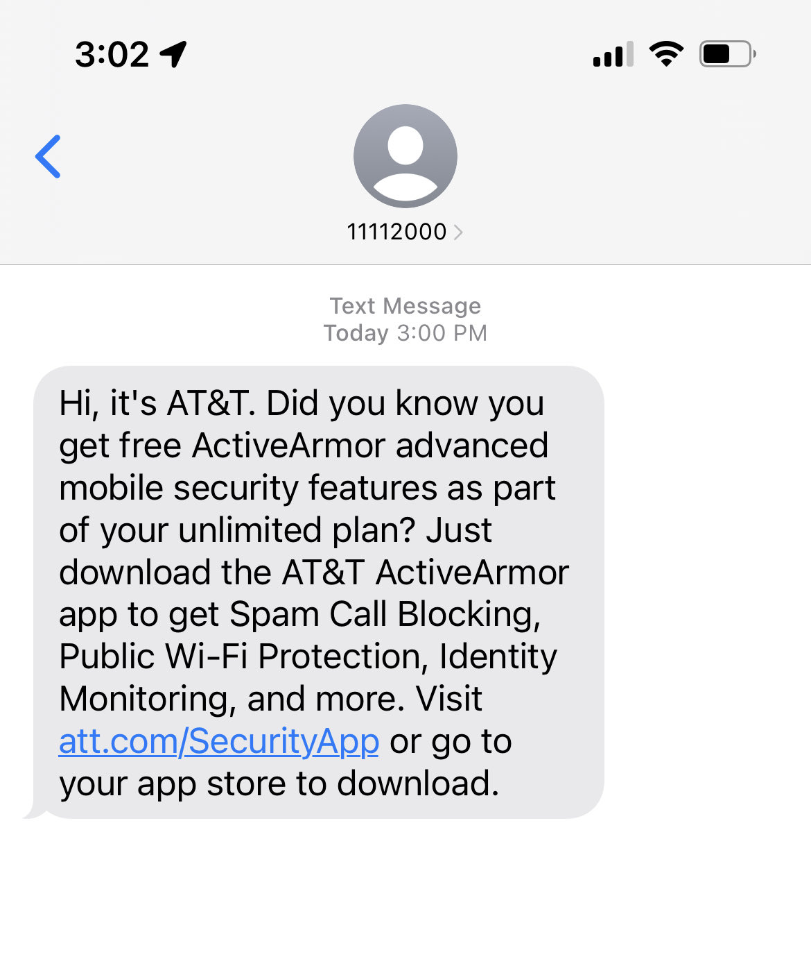 Up to 6 cash back Ive had several users reach out today about a text. Send me the app. ATT ACTIVEARMORSM Your security is our top priority.